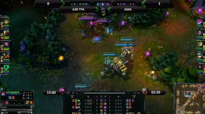 经过一段平静的FARM之后TPA三人集结下路欲推掉外塔,却被OMG赶来反手的四人完成一波1换3,随后防守下路的石头人也在塔下在被OMG三人精妙配合下击杀。