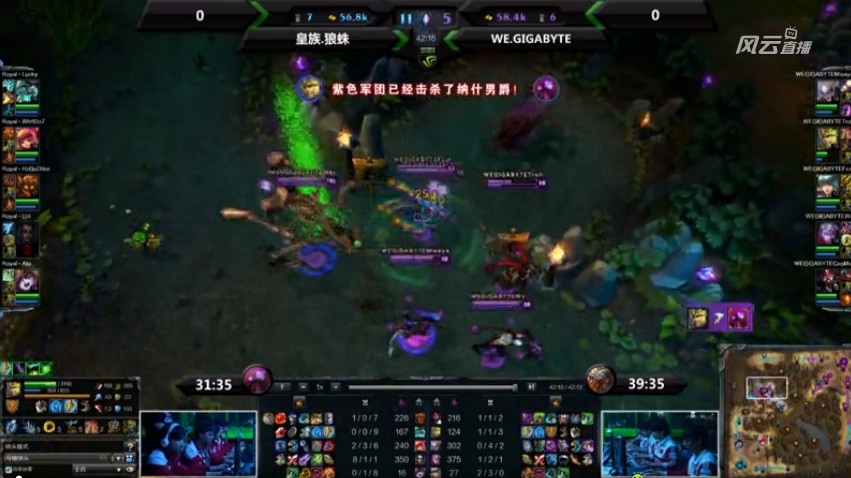 皇族本有机会可以一波带走WE,薇恩却又被大虫子意外的大招收掉,皇族失去了最好的一次机会。WE又趁皇族石头人浪费大招的时机抓住机会一波高地团战收掉安妮后又破了上路,最后在大龙的路上埋伏一波成功击杀对手三人,一举推平对手基地成功拿下第一局。
