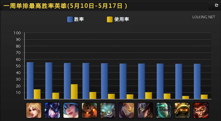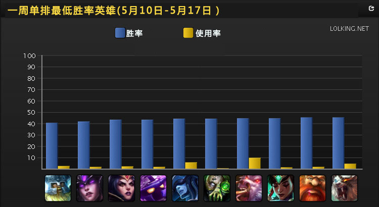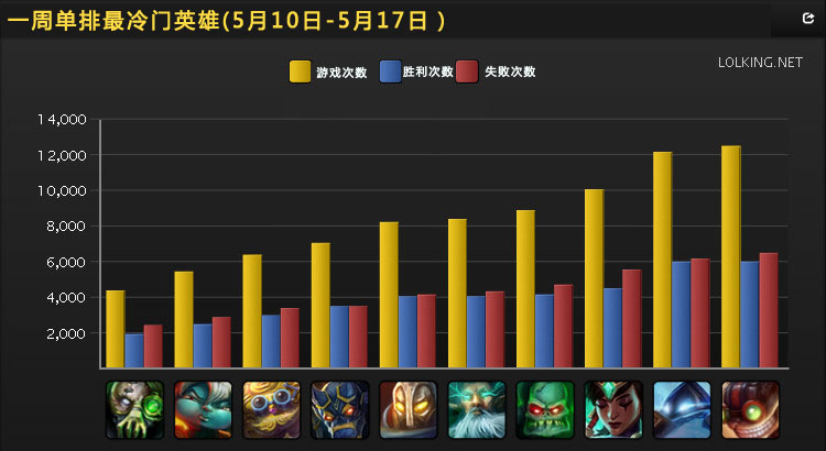奥拉夫胜率垫底,丽桑卓胜率排名倒数第五,扇子妈排名倒八