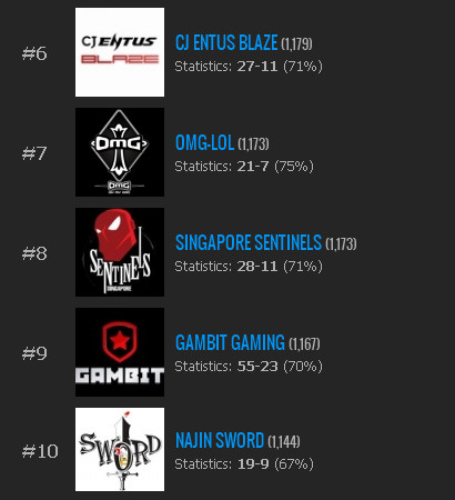 TPA升至第一,WE升至第二,韩国的CJ Frost由第一降至第四,FNATIC排名第五