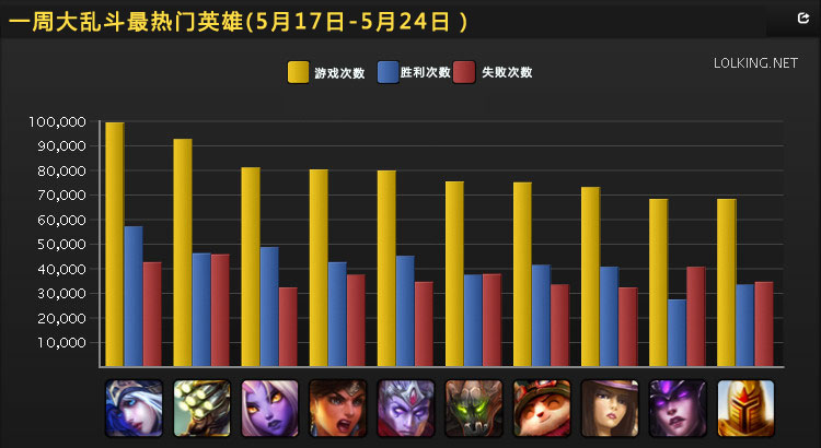 大乱斗中,寒冰射手、易大师仍是数一数二,众星之子索拉卡新入榜,立刻蹿升至第三名。