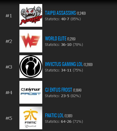 上周基本没有比赛,强队的成员都参加全明星赛了,因此战队排名和上周一样。