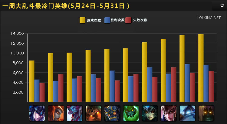大乱斗中,寡妇和妖姬的胜率垫底,时光老头虽然比较热门,但胜率比较惨。