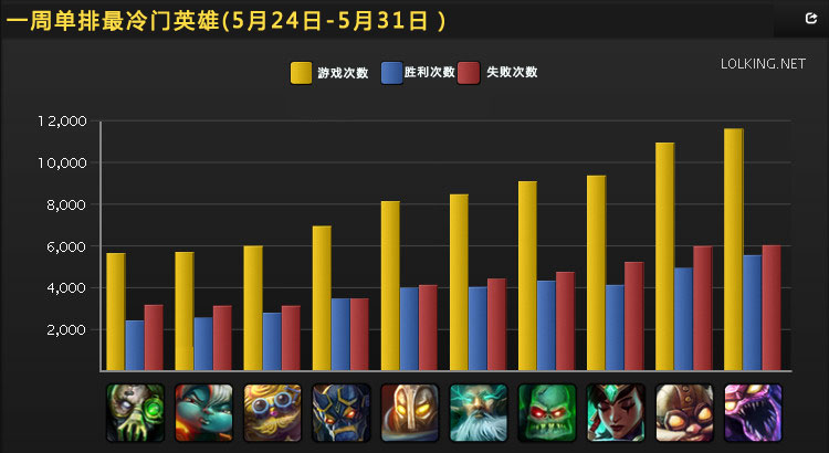 单排路人局冷门英雄,螃蟹再次垫底,水晶先锋新入榜。