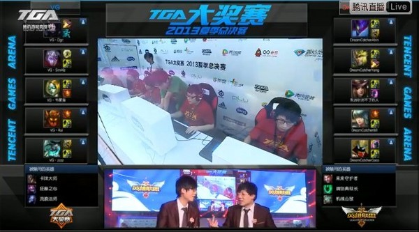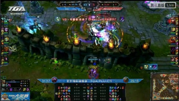 拿下大龙后的VG在DC高地打出了漂亮的团战,死歌和螳螂直接被秒DC只有女警逃脱,破掉对手中路的VG在下路强行开团,巨大的经济优势让VG已装备碾压对手,轻松破掉对手的基地,完成完美首秀。