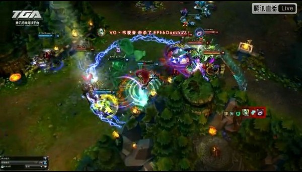 VG开局5人抓下,厄加特拿下杰斯一血,下路的厄加特持续强势的压制,接连拿下人头,虽然EP偷龙补偿经济,但厄加特持续的压制韦鲁斯,配合皇子建立了较大的优势,中路的发条也是发育领先杰斯。拿下小龙后中路皇子配合发条瞬秒EP3人,VG将优势再次扩大,经济领先8千。