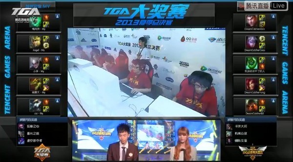 B组比赛第二轮第二场由加州宫馆.MY对阵DreamCatcher。加州宫馆.MY ban掉了凯南、慎、螳螂,DreamCatcher ban掉了卡牌、兰博、蜘蛛;加州宫馆.MY选择了锤石、皇子、皎月、鳄鱼、老鼠,DreamCatcher选择了杰斯、韦鲁斯、扎克、婕拉、泰坦。