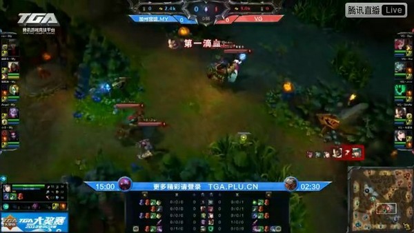 VG开局5人抱团拿下琴女的一血,VG在线上就渐渐的打开局面,建立了一定优势。
