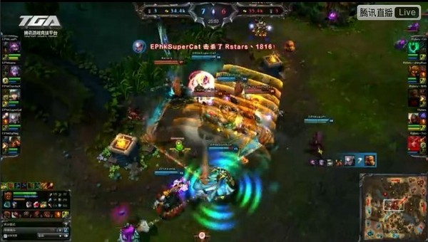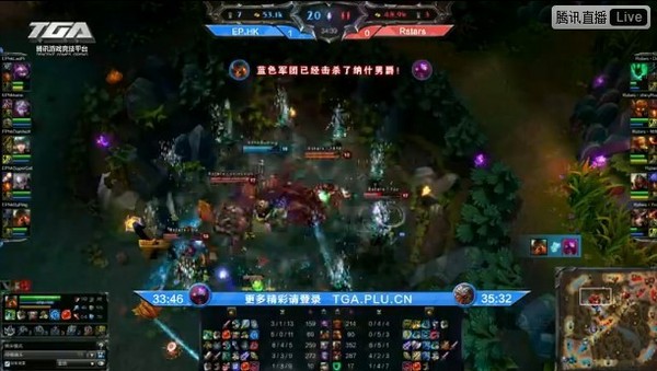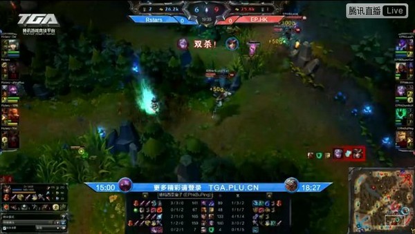 开局Rstars的劫单杀皎月拿下一血,推塔之后开始游走。而凯南在下路则是完全压制了石头人的发育。进入中期后EP开始发力,凯南和皎月的双AP冲脸让石头人的战略地位完全失去,而劫在几次团战中被琴女限制的很死,完全没有单独秒人的发挥机会。EP虽然场面占优但经济并没有拉开。