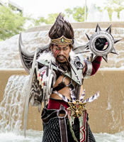 Shinrajunkie的cosplay很完美啊,眼神十分犀利,而那把飞斧,看起来会在下路造成成吨的伤害!