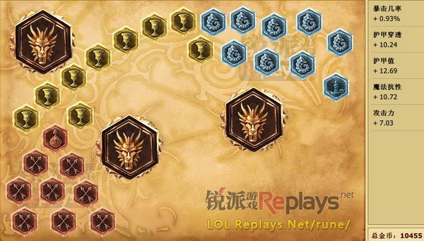 天赋没什么好说的,就按我这样加点 21/9/0天赋,符文的话,红色8护甲穿透1暴击拼脸,黄色固定护甲,兰色8固定魔法抗性1固定攻击,精华3个固定攻击。恩恩,就这样。
