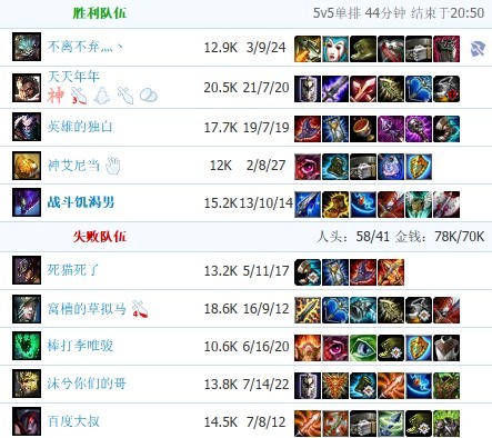 写上篇帖子的时候就有不少人攻击LZ低端没资格发贴。是,LZ是分段白银5,战力4000的渣渣,所以为了说明情况,昨天晚上找了一个现在是白金2的朋友(非吐槽,象LZ这样没姿色,没地位的大叔级玩家又不想装妹子真心很难认识钻石玩家,钻石玩家大部分都泡妹子去了,你懂得)打了双排。仓促间就打了2盘,数据只供参考。上单蓝波是我的白金2的朋友。死的有点多是因为中期大优势我浪了好几次。