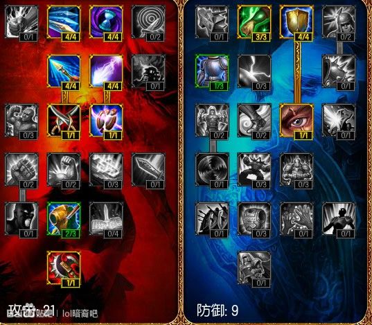 首先笼统给大家一个出装 天赋符文 水银鞋或布甲鞋 破败 饮血或九头 振奋 兰顿 狂徒 天赋21 9 当然 我这个不是一般的21 9 是这样