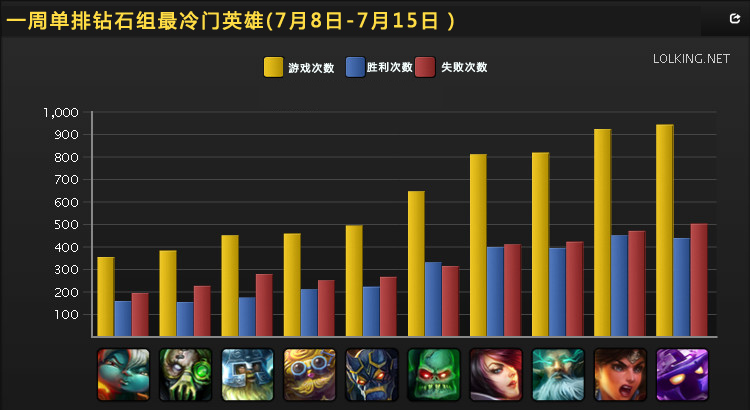 一周单排钻石组冷门英雄榜
