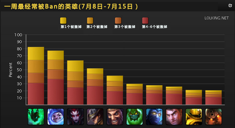 单排钻石组被Ban榜中努努、锤石、蜘蛛排行前三。努努应该不再强势,但玩家会习惯性ban他吧。