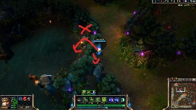 叉叉的地方就是退掉对方1塔后战斗的地点,而在这里战斗过来支援的英雄多半走这里,抓住破绽,带走她,之后可以依靠这个,发起团战(千万别在1塔在的时候中这两个,种左边那个会被塔打)