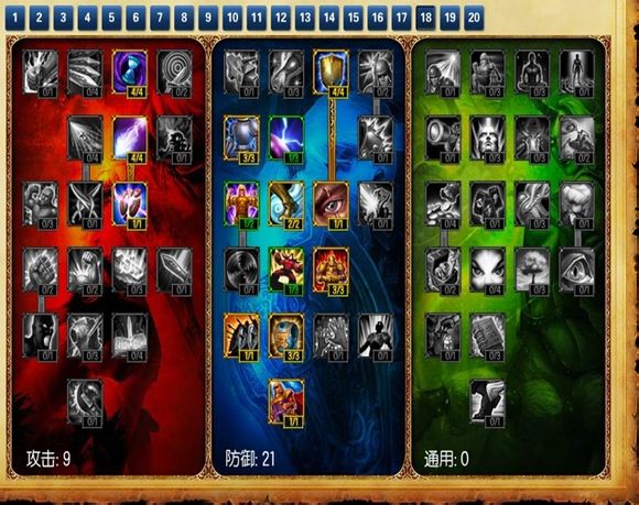 这个就是属于比较万金油的了,在你忧郁不定的时候,可以用这个,当然,灵活,可以将攻击换做物理的,防御的格挡,换成抵挡暴击,其他的三个性价不不是很高.