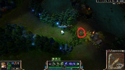 防止绕后,一般打野来塔下强杀,或者你的兵线压得靠前时的必经之路,于上图的那个蘑菇配合,下路一生平安(扯淡)