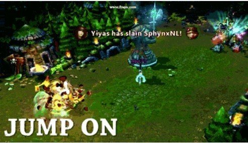 NO.16.全图大招什么的最讨厌了,相信我,你一定死在过EZ大、艾希的大、炸弹人的大……手下。赵信正在追着一个残血的贾克斯跑,已经跑了两条街了,还是木有追上。这时已方的队友船长突然放R,贾克斯顿时惊慌了,我是往上?还是往下?或是往左?还是往右?简直是四面楚歌啊o(╯□╰)o。