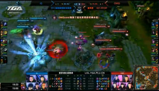在经济优势下OMG4人推中,卡牌和劫互换后OMG拿下中路塔顺势击杀娜美,转战上路后OMG先后击杀3人直接破塔,虽然IG打出包抄杀掉女警但经济差距进一步扩大,同时辛德拉下路带线险些拆掉下路水晶。OMG在IG野区先后击杀娜美和瑞兹直接下路破高地。