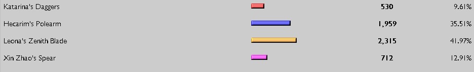 总共有四个选项,目前票数是蕾欧娜的顶峰之剑领先: