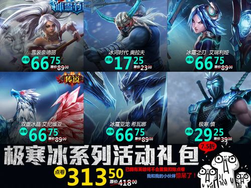 极寒冰霜系列皮肤礼包 7.5折 原价:41800点券 礼包价:31350点券,包含皮肤对应英雄的总价为51350点券
