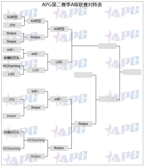 2013年8月7日,APG英雄联盟超级联赛进行了A级败者组两场比赛,上赛季两颗耀眼的新星onE对上了GamingSniper,最终走在职业化道路上的onE技高一筹,以2:0拿下。第二局的比赛中VG派出了前WAR3世界冠军,打AP位置的TED和打ADC位置的FLY,虽然两人均有不俗的表现,TED甚至一度杀到超神几乎翻盘,但因为整体实力的差距还是不敌Rstars,非常遗憾地输掉了比赛。在此我们也祝愿这两位曾经给我们带来无数精彩比赛,为国家争取到无数荣誉的选手在英雄联盟新的舞台上有更好的表现!