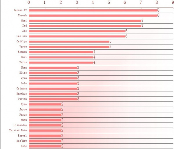 德玛西亚皇子嘉文四世的出场率都超过了3分之2。