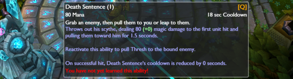 技能说明:成功击中后,死亡判决[ Q ]的冷却时间会减少