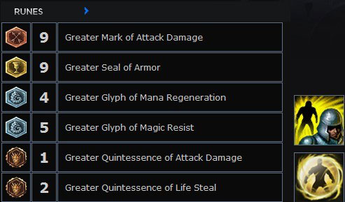 我想谈谈回蓝符文,通过牺牲一定的魔抗,从而换来一定的回蓝。我在使用带大部分带蓝条的英雄时,都会带这个符文,这让我可以把天赋点9点到防御,而不用为了回蓝点通用,如果觉得对面AP给你的压力会很大,那么你可以选择全部魔抗。(事实上,韩国很多选手也已经使用了这个套路,比如著名的ADC选手imp)