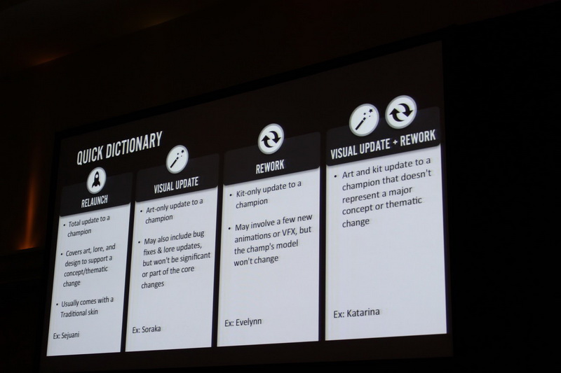 英雄重做分类,从左到右一次是:重新登场、视觉升级、技能重做、视觉+技能重做