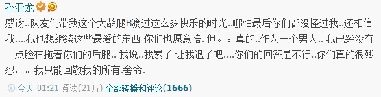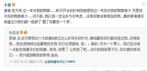 今天凌晨,笑笑发表微博表达了自己想要退役的想法: