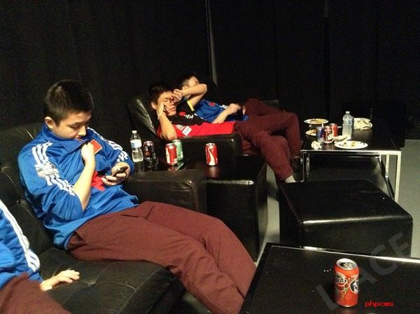 比赛非常紧张辛苦,队员们得空就在休息室小憩一下。