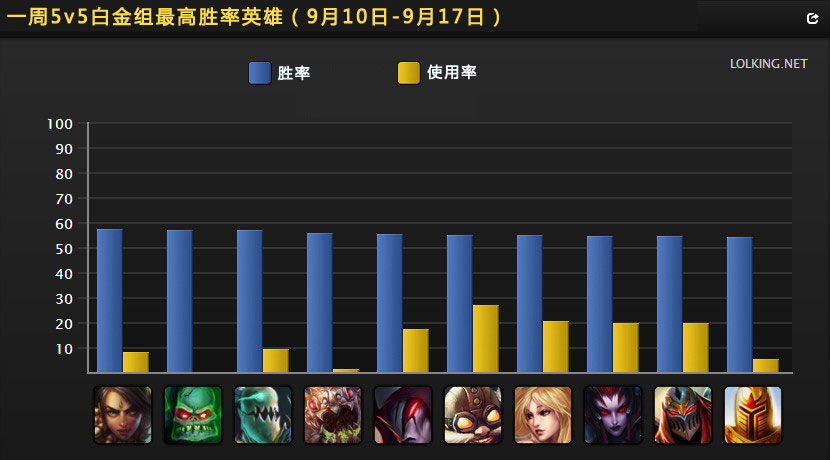 一周英雄榜:龙龟胜率提高 锤石胜率下降