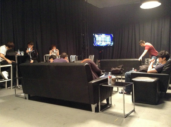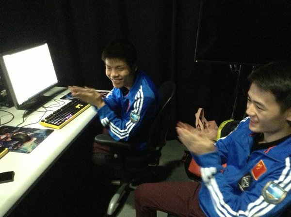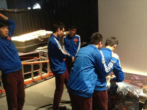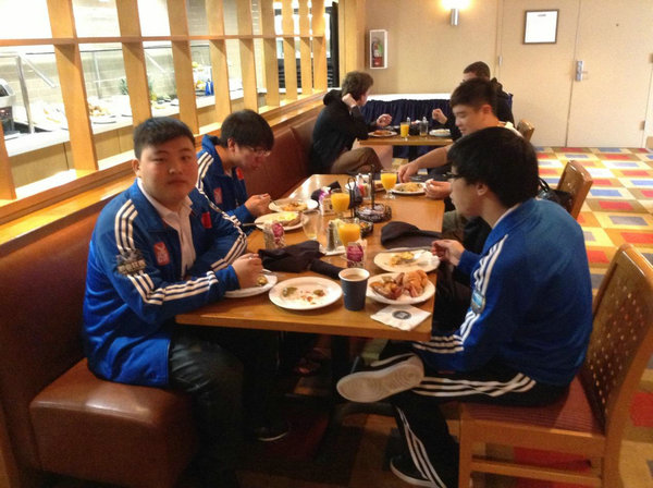 猩猩队长在外面给自己的队员开会?(猩猩队长真的好萌!!!小姑凉猜测他们是怕被别的队偷听?但是亲爱的小姑凉,除了TABE我觉得中国队员应该木有什么威胁?)