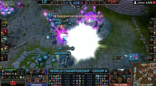 A组第16场比赛,TSM vs LD。虽然A组两支队伍出线名额基本已经定局,但是TSM和LD依旧拼尽全力。本场比赛的主角却是曾让OMG陷于被动的Nukeduck所用的小鱼人,在他的Carry下LD拿下TSM。