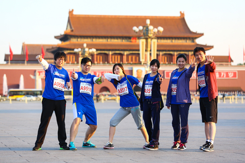 10月20日上午8时,2013北京马拉松赛在天安门广场鸣枪开跑,所有选手从天安门广场出发,他们要途经东城、西城和海淀三个行政区,挑战长达42公里的赛程。
