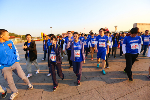 10月20日上午8时,2013北京马拉松赛在天安门广场鸣枪开跑,所有选手从天安门广场出发,他们要途经东城、西城和海淀三个行政区,挑战长达42公里的赛程。
