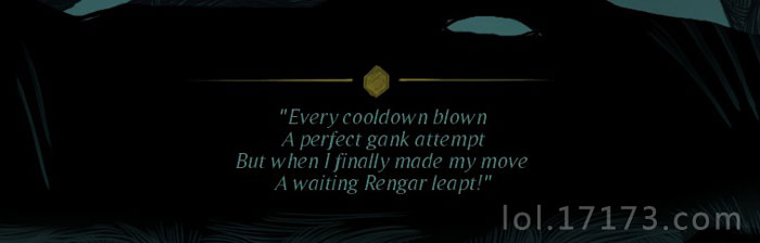 “每次冷却完毕后,都会有一个完美的gank。但当我最终完成移动时,等待的雷恩加尔跳出来了!”