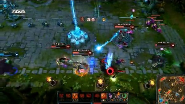 开场Kx在上路对贾克斯重点照顾,而随后的随后蜘蛛配合鳄鱼想塔下强杀贾克斯但却贾克斯晕到,蜘蛛被塔打死。随后双方围绕下路发起了一系列的Gank。卢西安在一系列的对拼后在发育上稍稍领先VN。15分钟VG3人偷大龙,2人在下路勾引,Kx却毫不知情。有了大龙BUFF的VG开始多线推进,进一步扩大优势。偷大龙让对手Kx有点慌乱不知如何应对,最终VG轻松战胜对手,晋级决赛。也将有机会参与LPL资格的争夺!