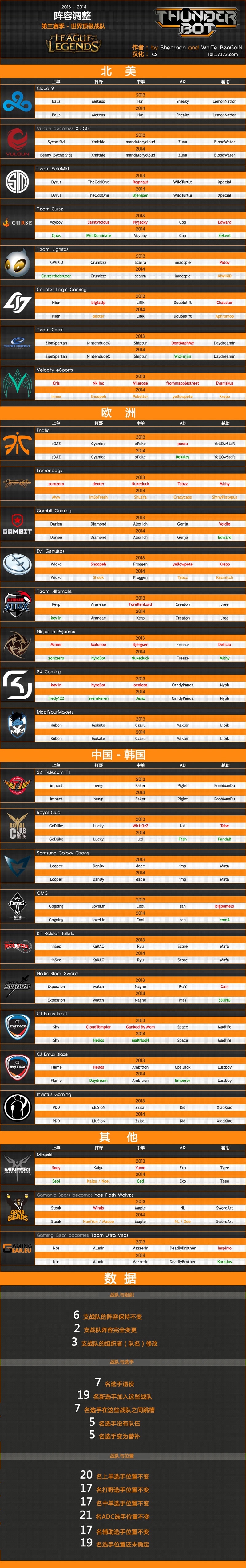 2013 - 2014 战队阵容变更