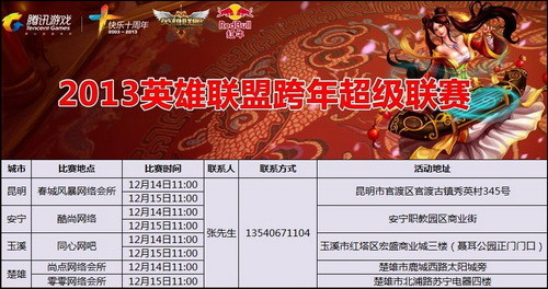 云南省2013英雄联盟跨年超级联赛震撼来袭!空前丰厚的万元大奖,前所未有的激情盛宴,想在群雄之中一战高低吗?那就快来报名吧!我们期待你的参与!