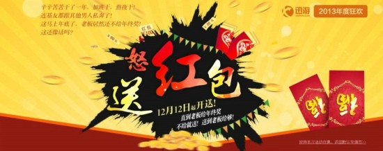 正好“双12”来了,同时也为了答谢各位新老朋友们长期以来对迅游网游加速器的支持与厚爱,我们决定了!怒送红包!不给就送!送到老板给够为止!海量英雄、皮肤等你来拿!