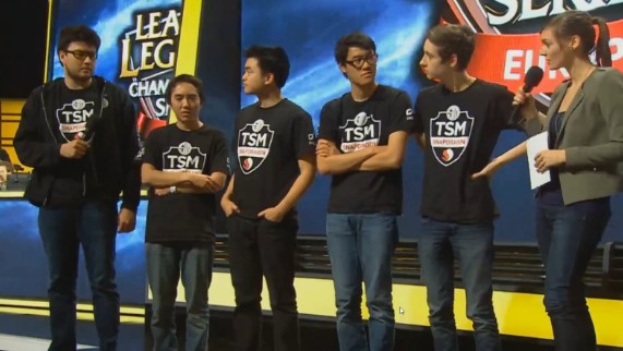 随后,主持人问到TSM对新赛季的展望,Dyrus表示:“呵呵,在北美我们只要担心C9吧,其他队伍对于我们来说只是浮云,特别是CLG。”Dyrus的回答让全场沸腾,而TSM的其他四名队员也惊呼不可思议(见上图他们的表情)。看来,Bjergesen的加入真的为TSM众将打了一发强心针。到底Dyrus的这番话会不会被打脸?新赛季的北美区LCS的比赛中,我们就能一见分晓。