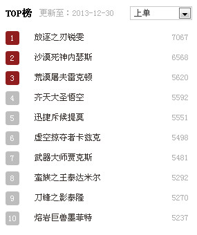 相关阅读:英雄,top,一周,卡萨丁,排行