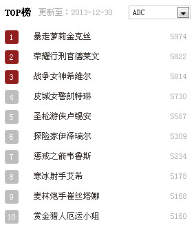 S4季前赛的改动,使游戏时间变得更长,因此后期英雄也随之崛起,比如狗头、龙女、蒙多。视野的改动使寡妇更加如鱼得水。新型辅助的开发,比如安妮也成为了一大亮点。而没有变化的ADC相当于被变相削弱了,因此综合能力前十榜中没有ADC的位置。