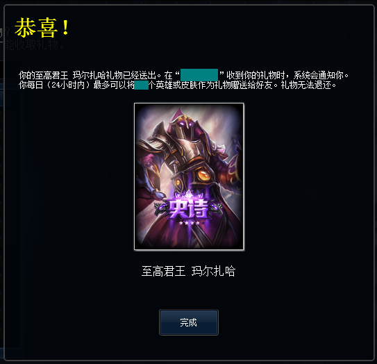 4)24小时内赠送与被赠送次数上限为3次(其中包含指定赠送英雄与指定赠送皮肤的次数)。