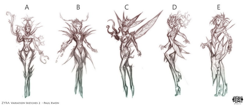 北京时间1月7日,美服设计师IronStylus在官方论坛公布了成吨的概念设计图,包括奎因曾经被设计成近战刺客!还有许多其他夭折的新英雄,比如长得像外星人、水元素、植物之王等等。