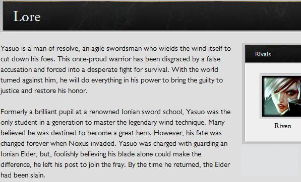 锐雯在美服官网的英雄资料页也将亚索列为「死敌」