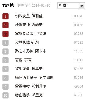 一周上单英雄TOP榜